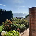 Le studio dispose de 1 chambre à coucher. Cet appartement Gallery - Terrasse Mit Seeblick Und Garten est équipé d'une salle de bains dotée d'un sèche-cheveux et des draps de bain. Une toilette séparée et une douche sont également disponibles.